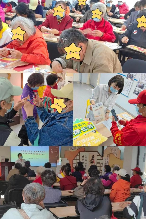 在健康生活厅,老人们通过粘、贴、拼的手法,亲手用五谷杂粮制作了精美的五谷画,寓意吉祥安康;深情款款写下的“一封家书”和“重九心语”,表达了对亲人、朋友、战友的浓浓思念和深深祝福;耐心聆听的骨健康讲座,了解了老年人常见慢性骨病的种类、危害及预防;一起“久久动起来”,老人们亲身体验了抖空竹、踢毽子、翻花绳等活动的乐趣,回味了童年的快乐。