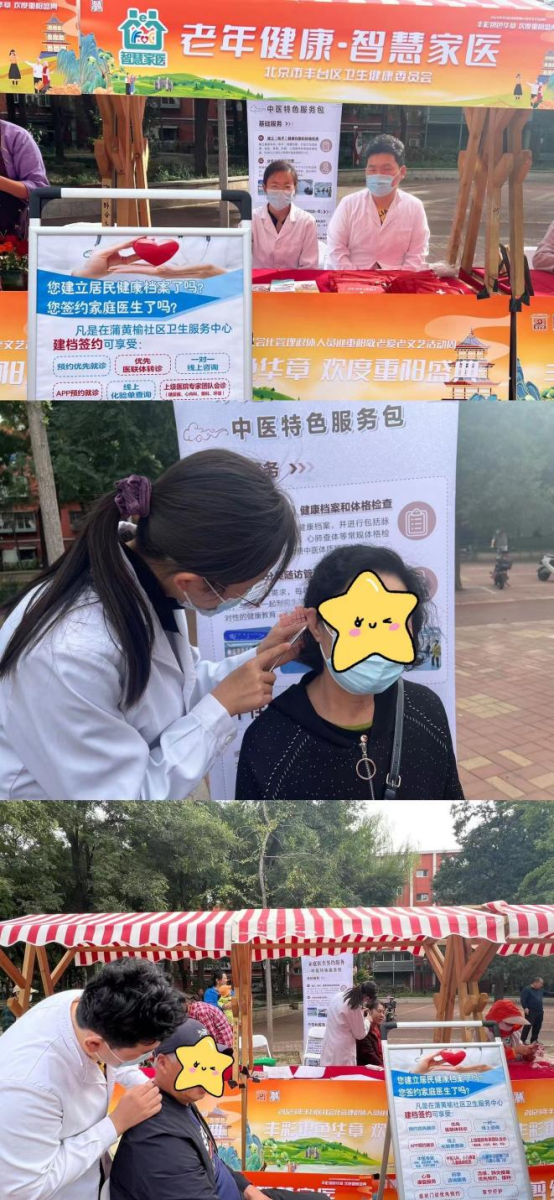 2023年10月18日,丰台区“敬老爱老文艺活动周”活动正式启动,在东铁匠营街道分会场,一首首红色歌曲燃起大家的心中热情,一个个魔术表演带给居民神秘惊喜,而蒲黄榆社区卫生服务中心家医团队的中医助力,更是带给老人满心的欢喜。